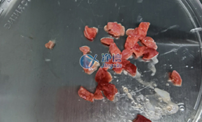 此次客戶需要研磨的樣品是3-6cm的整條魚,之前用刀式勻漿機,但由于樣品量少,用刀式的勻漿機研磨勻漿損耗比較大,因此選用凈信冷凍研磨儀效果更好。