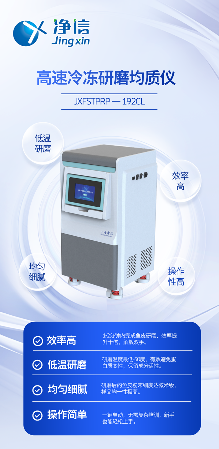 實驗背景:魚皮中富含膠原蛋白等活性成分,是美容保健、功能食品研發(fā)的熱門原料。但在實驗分析前,常需將魚皮研磨成均勻細粉,選對儀器,實驗事半功倍。凈信高速冷凍研磨均質(zhì)儀助您輕松解決研磨問題!