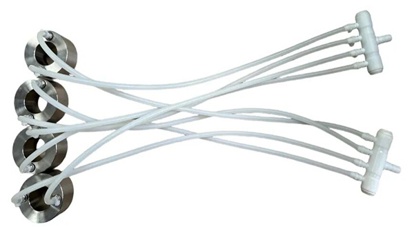 該模塊兩端分別與冷水機(jī)的進(jìn)水口、出水口相連,構(gòu)建起一套閉環(huán)的低溫水循環(huán)系統(tǒng)。通過持續(xù)循環(huán)的低溫水流,能將制備環(huán)境的溫度穩(wěn)定控制在 0-4℃度范圍。