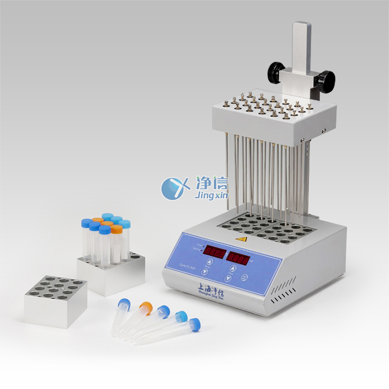 The JXDC-400 series nitrogen purging instrument is a high-precision temperature control instrument formed by the combination of microcomputer processing and PID control. Its working principle is to blow nitrogen to the surface of the heated sample quickly, continuously and controllably, according to the concentration of the solvent. Evaporation speed and boiling point, set heating temperature, realize rapid concentration of a large number of samples.
