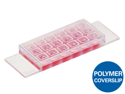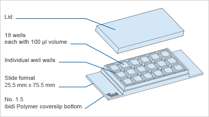 *Chambered coverslip with 18 independent wells and a non-removable polymer coverslip-bottom