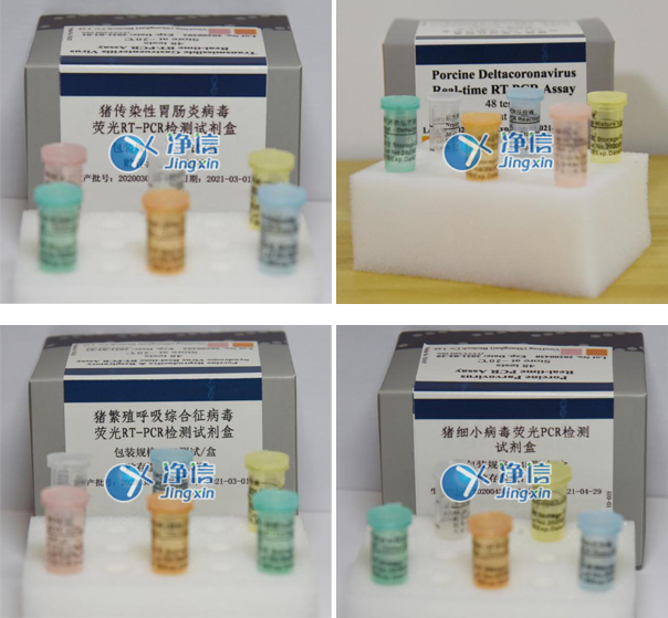 為了解決大型豬場對排查不明原因豬腹瀉的需要,本公司在分析了上述病毒大量國內(nèi)外基因序列的基礎(chǔ)上,原創(chuàng)性地設(shè)計了獨特的引物和探針,開發(fā)了“豬傳染性胃腸炎病毒、豬流行性腹瀉病毒、輪狀病毒A型三重?zé)晒釸T-PCR檢測試劑盒和“輪狀病毒C型豬德爾塔冠狀病毒雙重?zé)晒釸T-PCR檢測試劑盒兩款試劑盒。