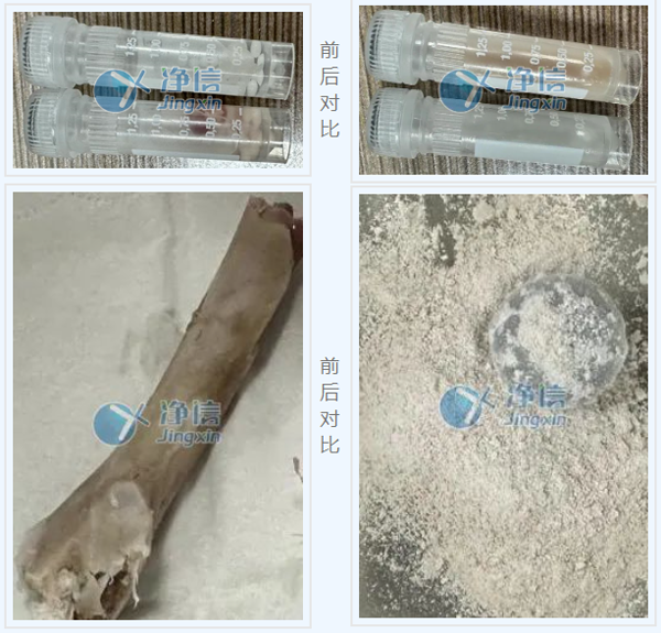 與實(shí)驗(yàn)前對(duì)比,組織塊成均勻漿狀,骨頭呈細(xì)膩粉末狀。在生物提取實(shí)驗(yàn)中,我們需要對(duì)樣品進(jìn)行研磨,研磨的方式一般可分為干磨和濕磨,但無(wú)論哪一種方法,呈現(xiàn)的效果需要足夠均勻和細(xì)膩才能保證后續(xù)提取實(shí)驗(yàn)的成功率。本實(shí)驗(yàn)中的樣品均已達(dá)到實(shí)驗(yàn)要求,可用于后續(xù)提取實(shí)驗(yàn)。