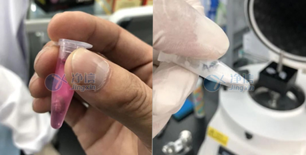 左為研磨前(加入提取試劑),右為研磨后(試劑已吸出)