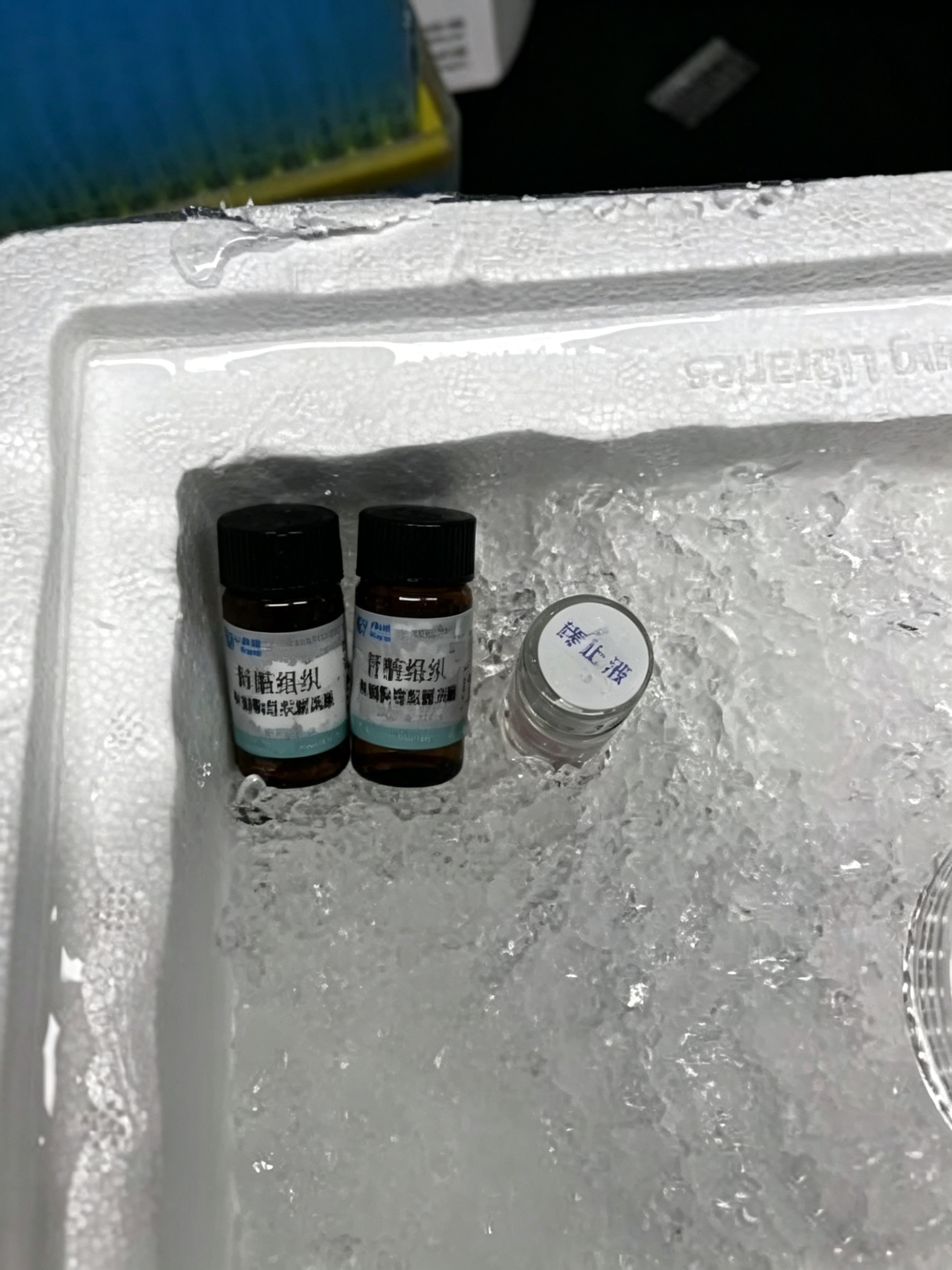 2.試劑解凍:將消化酶提前配好(酶離者:干粉、溶解液全部混合),使試劑混合均勻,終止液用涼水解凍。
