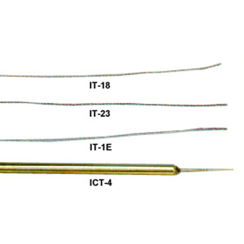 IT-23-用于微尺度標(biāo)本的超快速測(cè)量。傳感器導(dǎo)線直徑只有0.009"。組織植入23ga.針(已供)。很脆弱。最高溫度150℃。時(shí)間常量0.05秒。3英尺。聚四氟乙烯涂層。獨(dú)立運(yùn)行。