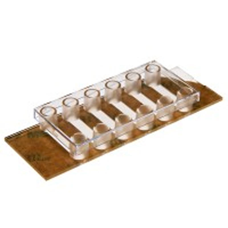 無底6通道載玻片用于細胞培養(yǎng),帶有自黏底部,從而可以粘上底物
