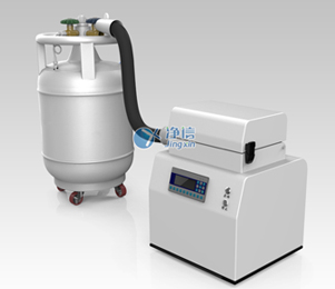 (3)開啟液氮控制開關(guān),液氮流入粉碎罐體后,再進(jìn)行物理降溫。一分鐘左右,迅速降溫到,-196度