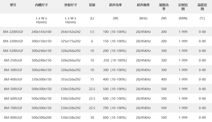超聲波清洗機規格參數: